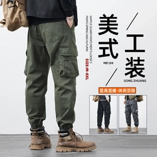 美式复古纯棉多口袋工装裤男秋冬季2025新款潮牌宽松休闲束脚裤男