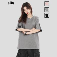 INSstudios 国潮牌情侣美式三条杠撞色拼接V领短袖宽松条纹t恤男