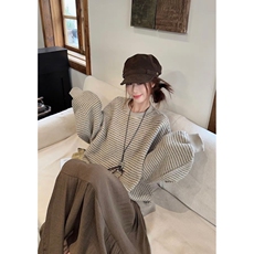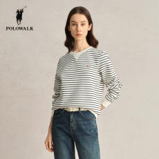 POLOWALK圆领条纹卫衣女士秋冬新款宽松慵懒风套头长袖上衣女
