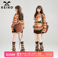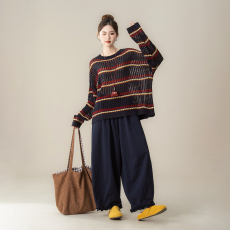 MULVAN 奇遇幻想 条纹长袖针织衫女秋冬宽松显瘦休闲毛衣开衫上衣
