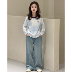 【新品】papa爬爬秋季儿童t恤男女童圆领条纹长袖纯棉宽松上衣