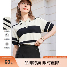 商场同款 摩萨克夏棉航海系粗条纹polo翻领衬衫领针织短袖女