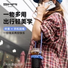 水杯可调节斜跨背带硅胶圈通用冰霸杯便携多功能挂绳桌面水壶杯套