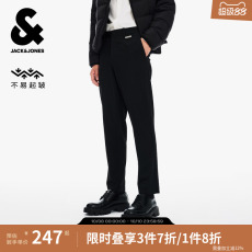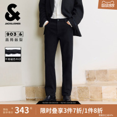杰克琼斯男装秋季裤子抗皱通勤商务合体直筒黑色休闲裤男士长裤子