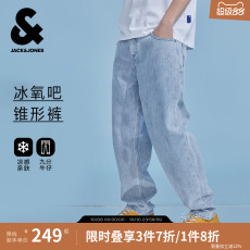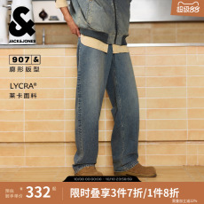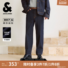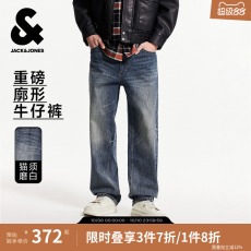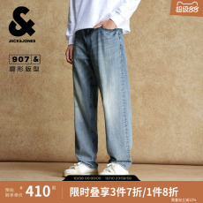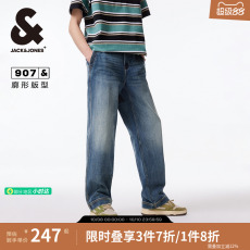 907杰克琼斯男装阔腿秋季新款水洗长裤子做旧廓形自在牛仔裤男士