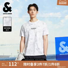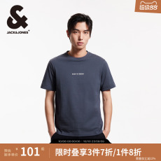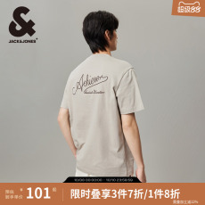 杰克琼斯男装2025年秋季新款纯棉男士短袖T恤满印打底衫刺绣字母