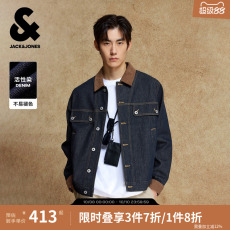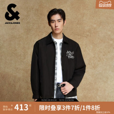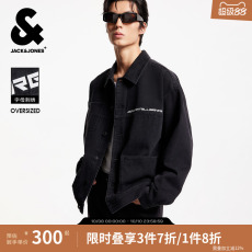 杰克琼斯男装士春秋季新黑色宽松工装刺绣翻领衬衫牛仔夹克外套薄