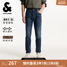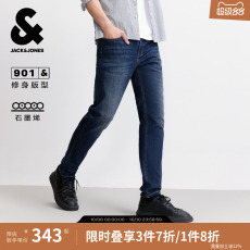 [石墨烯]901杰克琼斯男装秋冬修身猫须复古水洗中蓝牛仔裤长裤子