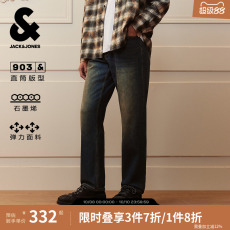 [高弹]903杰克琼斯男装复古水洗宽松直筒牛仔裤男款长裤子男士