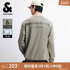 杰克琼斯男装秋季新款纯棉撞色印花长袖T恤情侣刺绣卫衣外套男士