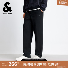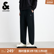 杰克琼斯男装新款秋冬针织休闲裤男士卫裤直筒宽松阔腿黑色长裤子