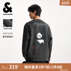 杰克琼斯男装卫衣秋季新款时尚印花加绒圆领宽松休闲保暖长袖上衣