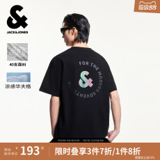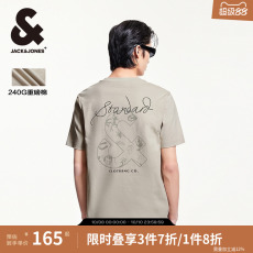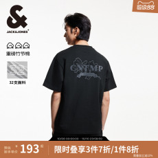【重磅棉】杰克琼斯男装2025年秋季新款刺绣男士短袖T恤宽松印花
