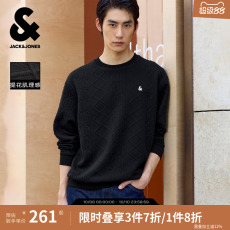 【肌理面料】杰克琼斯男装25年秋季新款宽松提花卫衣刺绣LOGO外套