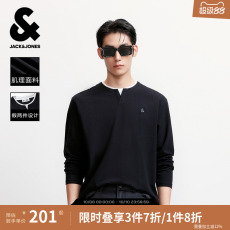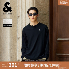 【亨利领】杰克琼斯男装25秋季新款长袖T恤刺绣宽松打底衫肌理感