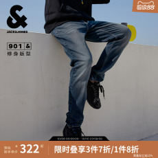 [强弹]901修身杰克琼斯男装休闲复古中蓝水洗牛仔裤长裤子男秋冬