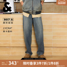 907杰克琼斯男装秋季复古莱卡宽松廓形美式黄泥男士牛仔裤长裤子