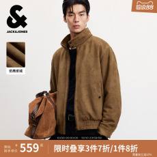 杰克琼斯行政夹克男2025秋季商务仿麂皮外套复古翻领短款上衣男装