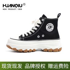 环球松糕高帮帆布鞋女2025秋季爆款高帮ins增高百搭厚底休闲板鞋