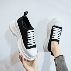 黑色松糕厚底帆布鞋女2025新款春季小白鞋休闲运动单鞋女鞋子