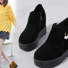瑕疵处理!牛皮反绒ZUSE内增高厚底女秋新款高坡跟一脚蹬松糕单鞋
