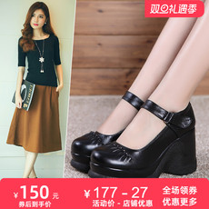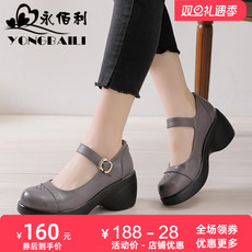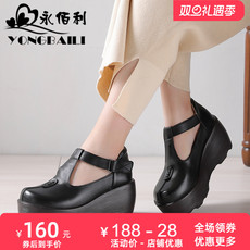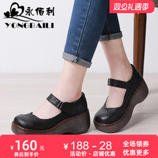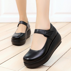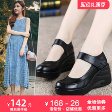 超轻松糕厚底不累脚玛丽珍单鞋舒适圆头坡跟真皮防水台一字扣女鞋