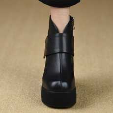 0CM厚底防水台v口短靴复古风松糕底西部靴百搭坡跟高跟时单鞋女