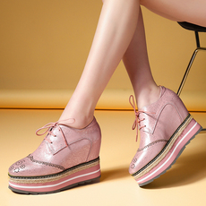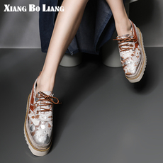 XIANGBOLIA真皮复古方头厚底单鞋女士欧洲站休闲坡跟增高松糕单鞋