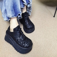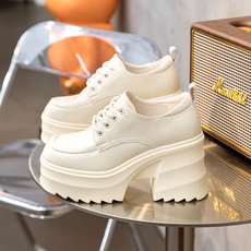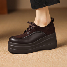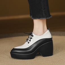 2025春季新款牛皮厚底复古松糕跟女单鞋英伦坡跟高跟休闲女鞋皮鞋