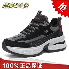 真皮内增高小白鞋女鞋韩版百搭2025秋季新款厚底松糕透气坡跟单鞋