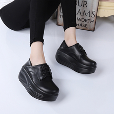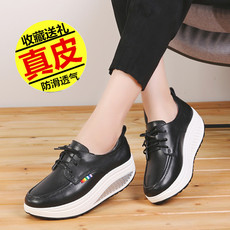 春秋季新款休闲摇摇鞋女真皮厚底松糕单鞋百搭增高舒适坡跟女鞋