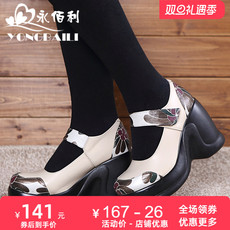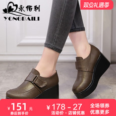 877春秋新款坡跟厚底休闲百搭单鞋妈妈皮鞋松糕软底圆头一字扣鞋
