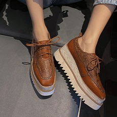 2025春秋新款真皮系带单鞋女百搭厚底鱼鳞纹松糕休闲高跟坡跟女鞋