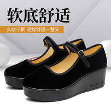 答芙松糕厚底老北京女鞋中跟布鞋单鞋酒店职业女士工作鞋坡跟黑色