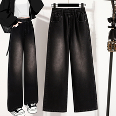 加肥大码女装牛仔长裤秋季松紧高腰显瘦直筒阔腿裤休闲百搭拖地裤