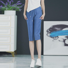 100%纯亚麻裤女夏薄款宽松显瘦松紧腰大码棉麻哈伦裤小脚九分裤女