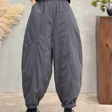 秋冬新款松紧腰加厚菱形格休闲显瘦洋气百搭南瓜大口袋哈伦裤