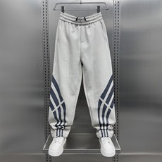 2025秋季新款时尚条纹拼接休闲裤男裤子潮流痞帅抽绳松紧腰哈伦裤