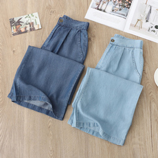 天丝牛仔五分裤女夏季薄款新款松紧腰宽松显瘦时尚百搭直筒阔腿裤