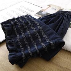 炒盐酵素色织亚麻牛仔裤女内里包边松紧腰显瘦宽松灯笼裤休闲长裤