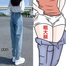 高腰哈伦牛仔裤女春秋2025新款宽松显瘦萝卜大码松紧老爹胖mm裤子