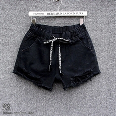 高腰牛仔短裤女宽松大码胖mm显瘦松紧腰牛仔裤破洞阔腿裤夏季新款