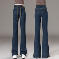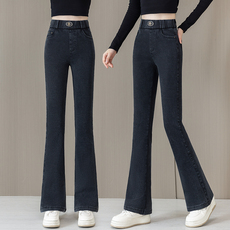 加绒松紧腰微喇牛仔裤女冬季新款窄版阔腿裤高腰马蹄裤显瘦喇叭裤
