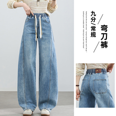 小个子弯刀牛仔裤女2026春季新款高腰宽松百度显瘦松紧腰阔腿裤