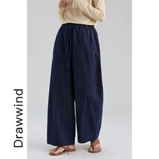 画风drawwind春夏季松紧腰系带牛仔裤女宽松高腰轻薄休闲阔腿长裤