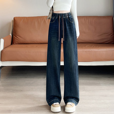 窄版阔腿春秋直筒牛仔裤女宽松2026年新款高腰显瘦松紧腰妈妈长裤
