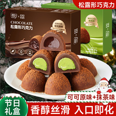 黑松露形巧克力礼盒装纯可可脂抹茶味休闲食品年货糖果解馋小零食