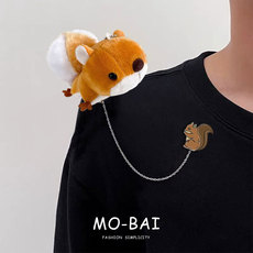 毛绒松鼠胸针2024年新款可爱玩偶公仔挂件衣服书包别针配饰品徽章