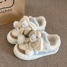 鲁鲁蛋可爱小熊百搭chic鞋子加绒板鞋女款2025新款秋冬厚底小白鞋