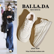 鲁鲁蛋 韩系休闲板鞋女款2025新款秋冬厚底小白鞋加绒百搭面包鞋
